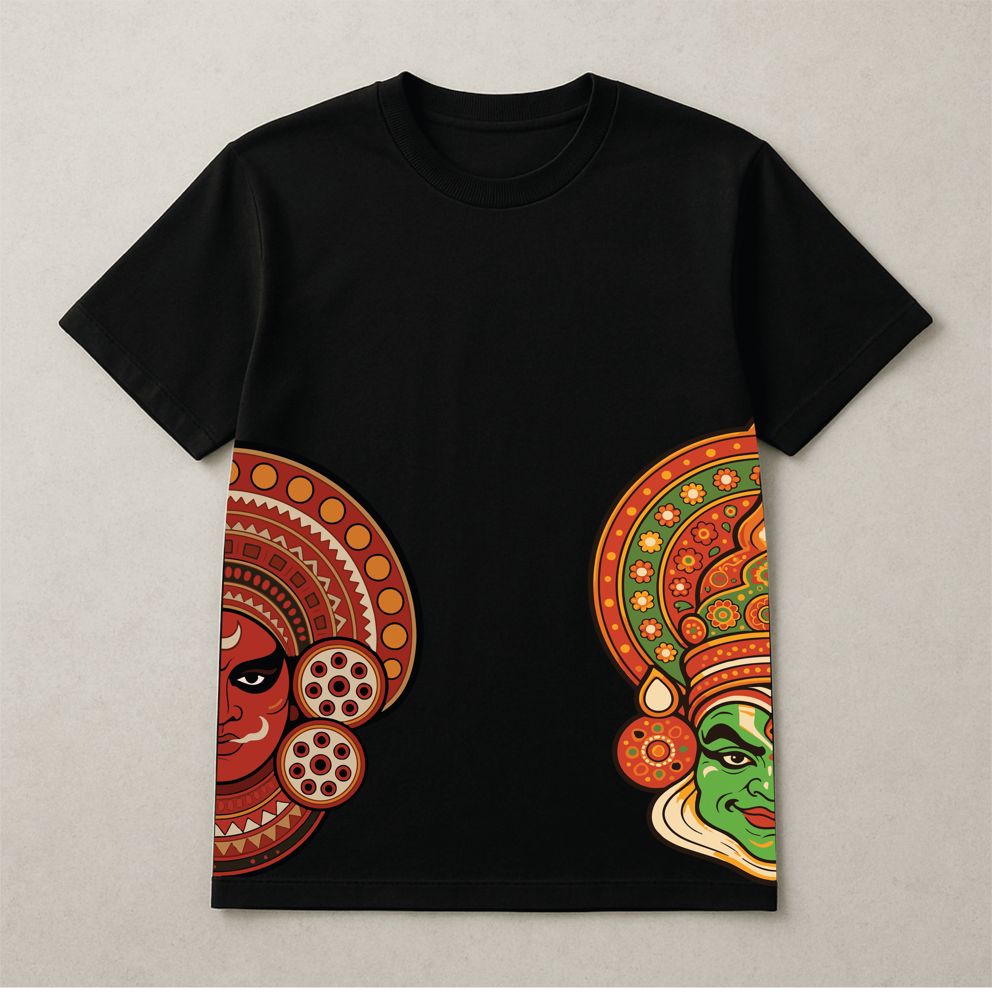 Step into dynamic festival expression with our “Kathakali x Theyyam Fusion Tee”.